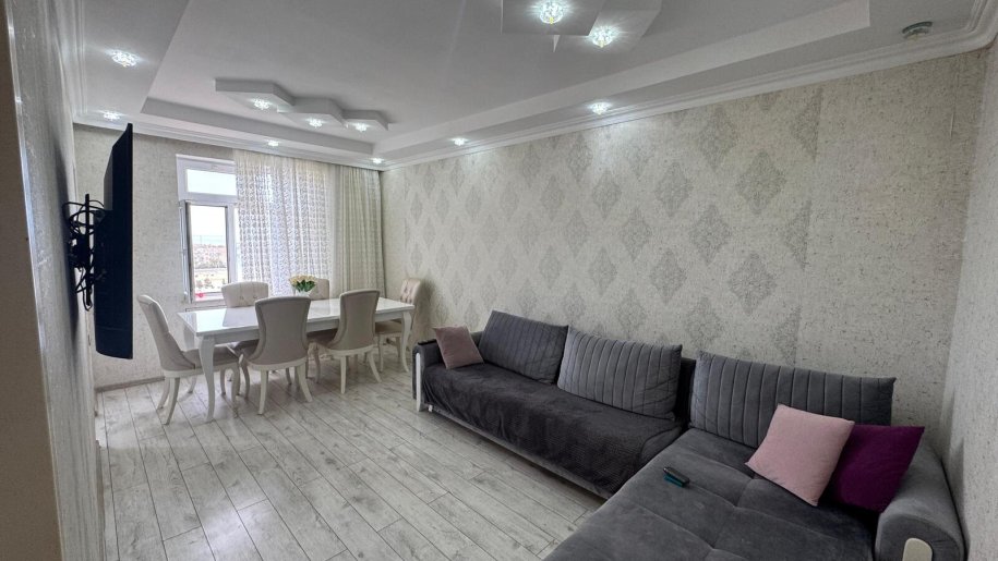Hovsan Qesebesinde 4 otaqli tam temirli menzil satisa cixdi.Bina Kiyev lahiyeli 9 mertebeli binadir.Menzil 9 cu mertebede yerlesir.Orta blokdur.Istilik sistemi merkezidir.Ipotekaya yararlidir.Dayanacaga ve Iri marketlere yaxin mesafededir.