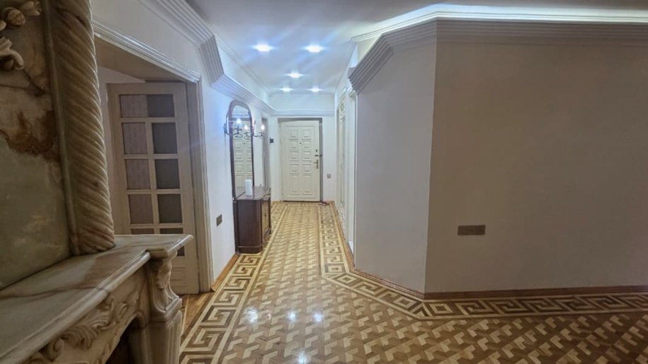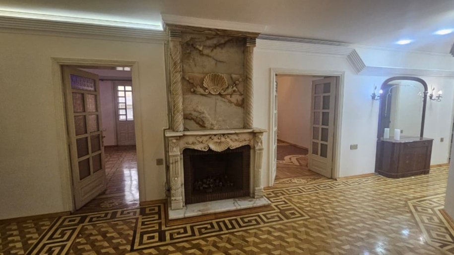 Tam mərkəzdə, 28 May metrosu, Rəşid Behbudov küç. 31-də, Milli Bankın yanı, 6 mərtəbəli arxitektur daş binanın 4-cü mərtəbəsində, 2 mənzilin birləşməsi, 150 m² sahəsi olan 5 otaqlı mənzil satılır. Mətbəx və san/uzellər yeni təmir olunub və təmirdən sonra yaşayış olmayıb, şəkillərdən də gördüyünüz kimi otaqların da təmiri yaxşıdır. Döşəmə parketdir, qədimi kamin var.