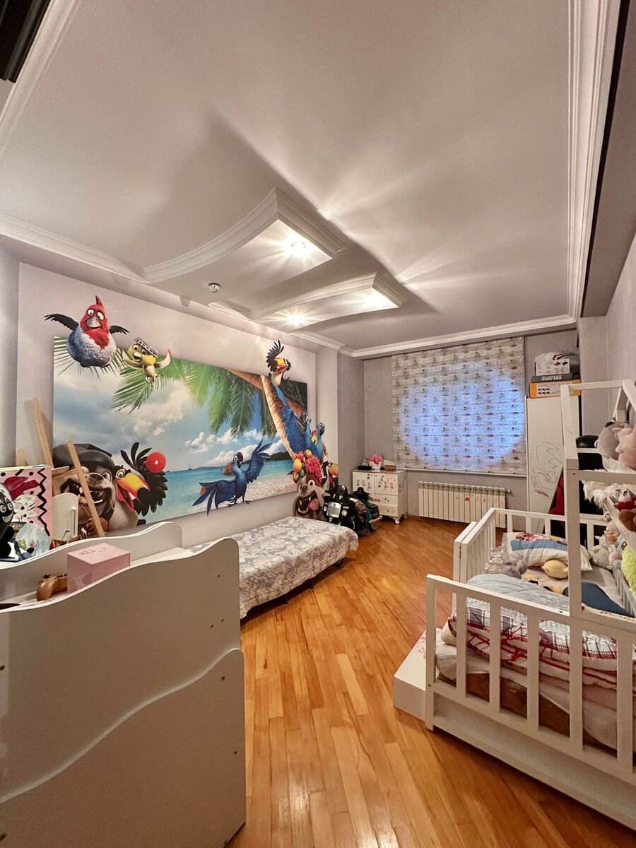 Nerimanov metrosundan 5 deqiqelik mesafe, E. ELiyev kucesi, yeni tikili, QAZLI ve KUPCALI binada, umumi sahesi 130 kv m olan 3 otaqli menzil satilir. Mertebe 14/9, ela temir, doseme parket, qurasdirilmis metbex mebeli, 2 kondisioner, 2 sanuzel, suyu, isigi daimidir, istilik sistemi kombi – isti pol. Butun senedler qaydasindadir. Binada 2 suretli lift, yeralti qaraj, genis heyeti, usaq meydancasi. Yaxinliqda usaq baxcasi, mekteb, dayanacaq, marketler ve diger iase xidmeti obyektleri yerlesir.