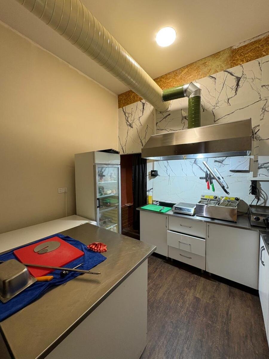 Fast Food Restoran sistemi : Ümumi sahəsi 170m² olan və. 1-ci mərtəbə ümumi zal , mətbəx və 2 ayrı sanitaq qovşaqlardan ,işçilər üçün qarderob , sanitar qovşaq və s. ibarətdir. Mətbəx mebeli , sobalar , masa , oturacaqlar , bir sözlə restoran üçün lazım olan bütün əşyalar mövcuddur. Təmir şəxsi istifadə üçün edildiyindən keyfiyyətli və brend məhsullardan istifadə olunmuşdur.