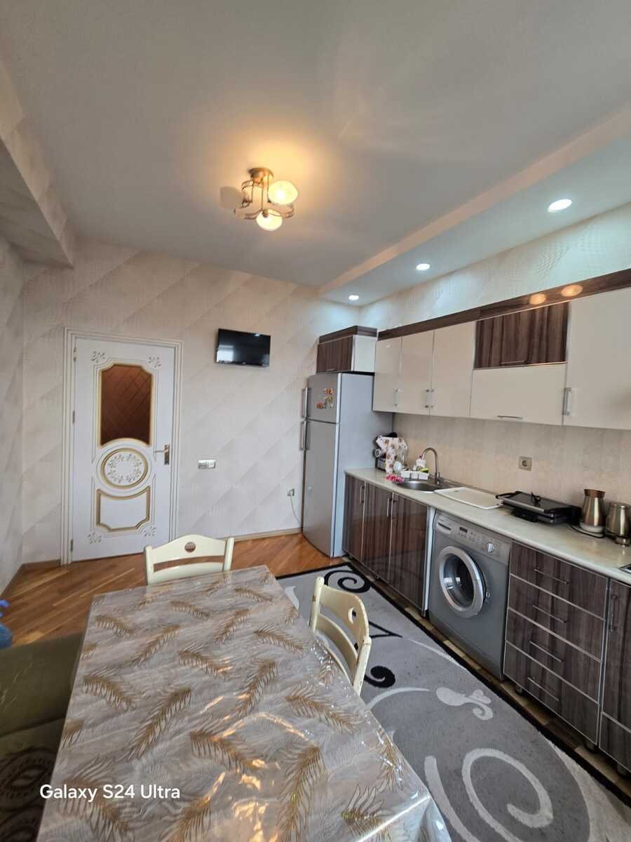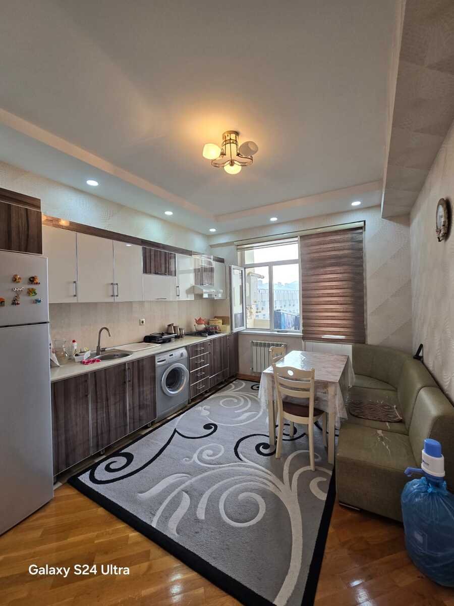 Bina Həzi Aslonov metrosundan 6-7 dəqiqəlik piyada məsafədə yerləşir. Binada 3 sürətli lift geniş yaşıl həyəti, yeraltı parkingi var. Mənzil qanuni 3 otaqlıdır. Yaxınlığında məktəb baxca super marketlər bütün infrastruktur var. Qazı suyu işığı daimidir. İstilik sistemi kombidir. Sənədi Çıxarışdır. Ofis haqqı 1%.