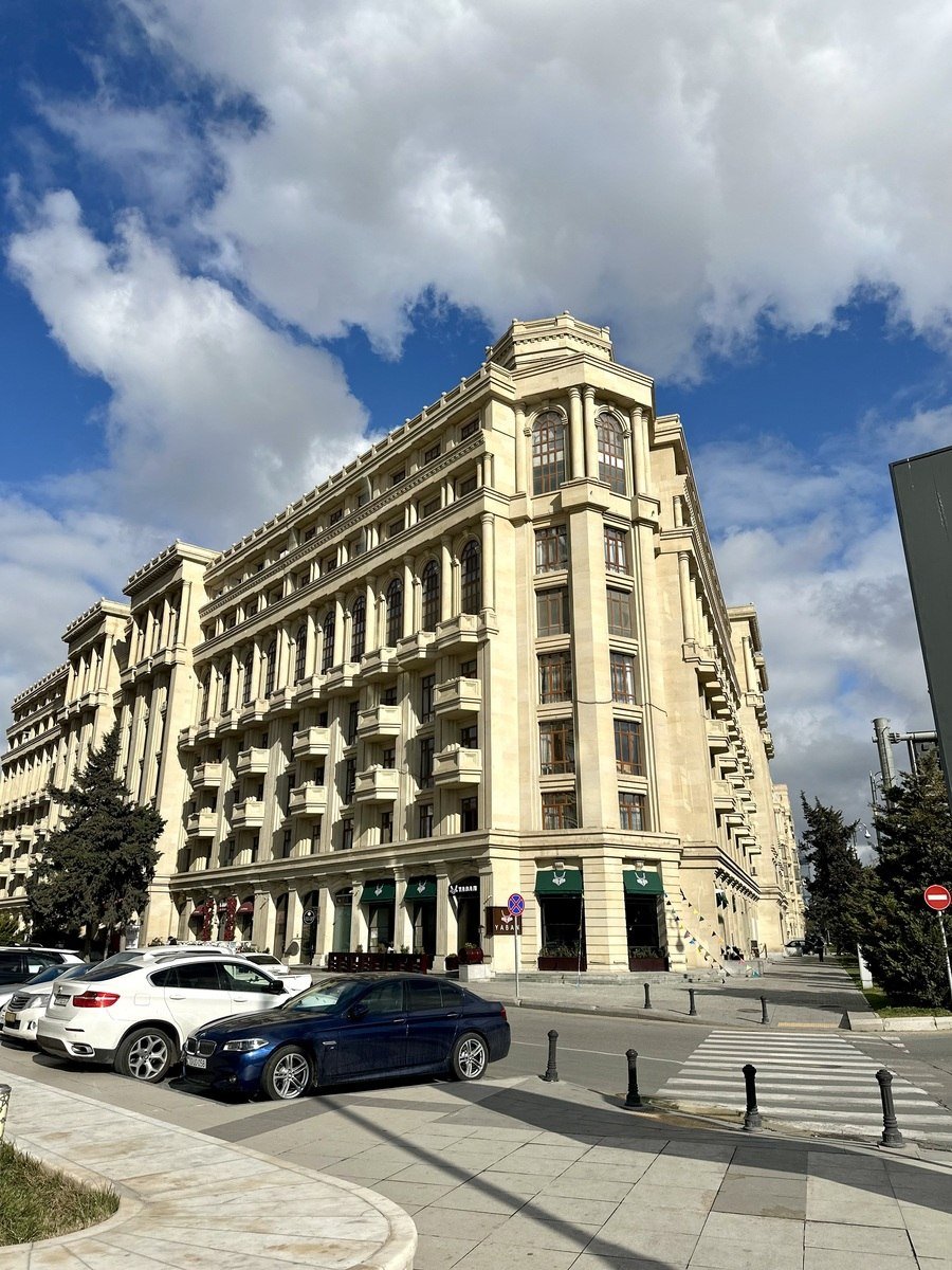 🔸 Qapalı həyəti, həyətində parking, iki sürətli lifti var(sərnişin və yük).