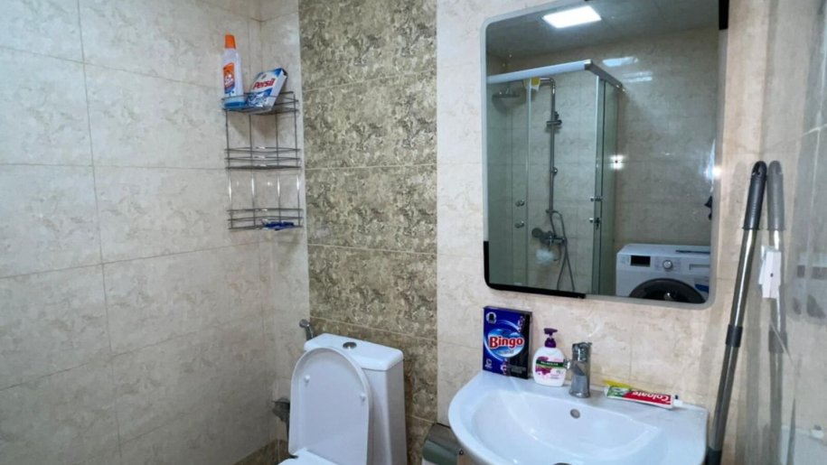 Mənzil yeni tikili binada yerləşir və tam əşyalıdır. Sahəsi 70 kv.m-dir. Evdə yaşayış üçün zəruri olan bütün avadanlıqlar (soyuducu, paltaryuyan, kondisioner, TV, kombi sistemi) mövcuddur. Şəkillərdə görünən kiçik televizor daha böyük model ilə əvəz olunub.