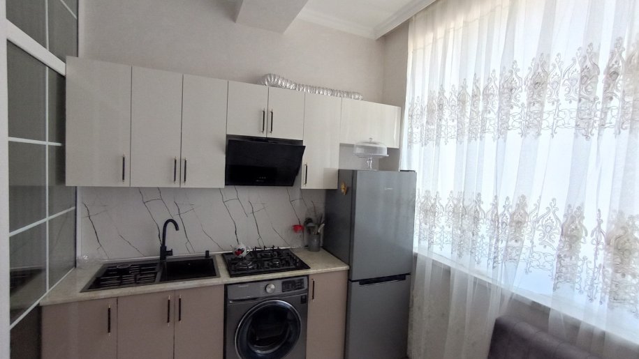 Salam, ev yalnız ailəyə verilir. Evin hər bir şəraiti var. Hər bir yanda yerdən isitmə sistemidir. İşıq, su, qaz daimidir. Lift var, marşruta və marketlərə yaxındır. Əşyaları ilə birgə verilir. Qiymət 400 manat.