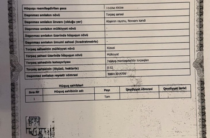 12 sot torpaq satılır, Novxanı