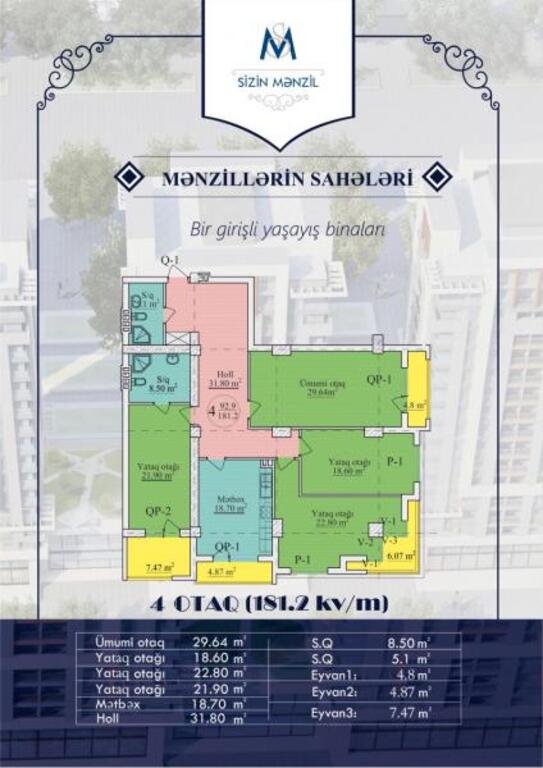 Satılır 4 otaqlı yeni tikili, 181.2 m2, Nəriman Nərimanov m.